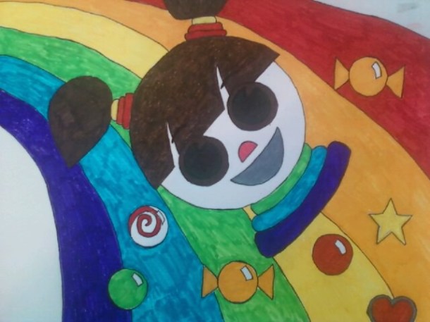 After I woke up, I kept thinking about the nice rush I got in the dream. Sort of like riding a bike, but in the dream it seemed like less work. I let my mind wander to what I would put on my skateboard if I could have a custom picture on it. This is what came into my head. Then I had to draw it to try to get it out of my head. It is sort of like Harajuku girl meets Punky Brewster, with a little bit of Cartman when the aliens make him sing because of the probe in his ass.