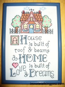 I used to watch the great sitcoms of the 80’s and always say “I could write that.” And except for the fact that I am too scared of big cities to move to L.A., I think I could have been good at that. I think it was my secret career dream. I should have listened the night it presented itself to me in a dream. In the dream, I was working with a group of people to create a new TV show. It was all last minute and came together very quickly (Yes. I am aware shows take years to develop and get on air–DREAM, remember?) So quickly, that when they put the show together, they wanted to give me a vanity card at the end, but I hadn’t created one. In the dream, I never knew they created one for me until I watched my first episode and saw it at the end. The other creators knew I liked to cross-stitch (I actually do in reality, but haven’t done it in years), so my vanity card was done in cross-stitch. If I ever knew what it said, I can’t remember. I have never forgotten that dream. And I know if I ever do create a series, that is what I will use.