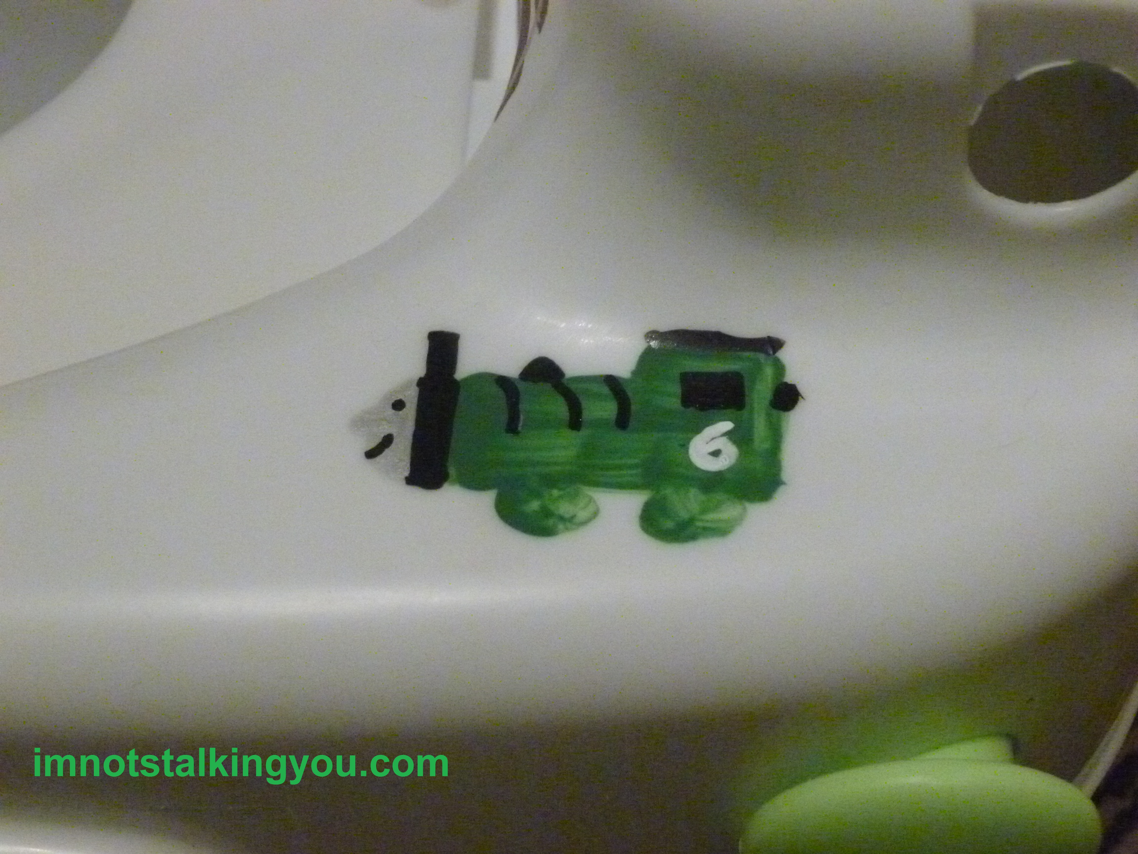 So, last night after my son went to bed, I decided to turn it into a Thomas & Friends potty. My kid is crazy-nuts for Thomas and all things train. Let’s hope this gets us on the right “track” again with potty-training. Lol.