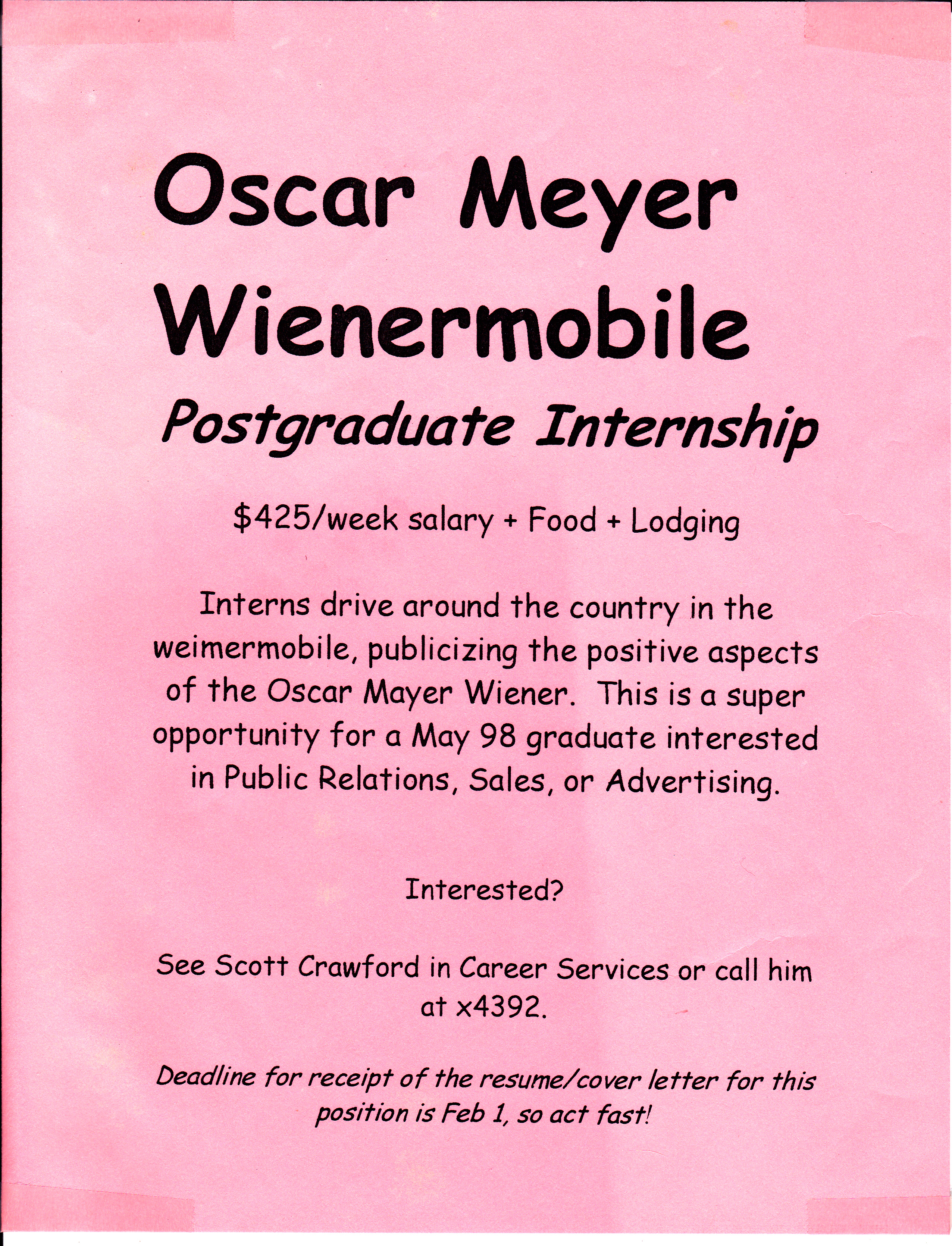 The sign to apply for the Wienermobile Hotdogger interships that year! The year of my impending graduation!