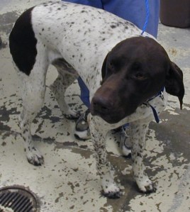 After we had Dave for a little over a year and gotten her reasonably trained, my husband was itching to get a dog of his own. Unlike myself, he made weekly trips to the Lenawee Humane Society before finding the dog that was right for him. He found a noisy, jumpy German Shorthair Pointer named Archer. Archer had been a stray, so the Humane Society had held him for a week. My husband spotted him the first day he was available for adoption. I infamously said,”You like THAT dog?” I stand by that statement to this day. We took Archer in the room to play with him. He was overly friendly, trying to sit in my lap the whole time. My husband was sure that was the dog for him, so we took him home. He was renamed Parker.