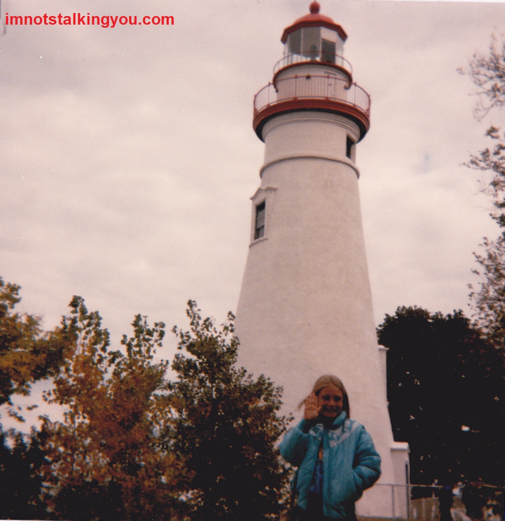 It was a very dreary day when we visited. The sky was the same gray as the sheets of marble that the lighthouse rests on. I enjoyed climbing on the uneven stone. It really frustrated me that the lighthouse was unmanned and locked up. I was like a reverse Rupunzel. I desperately wanted to get INSIDE the tower. But it would be years later before the State of Ohio would realize its full tourism potential and started offering visitors a chance to go inside of it.