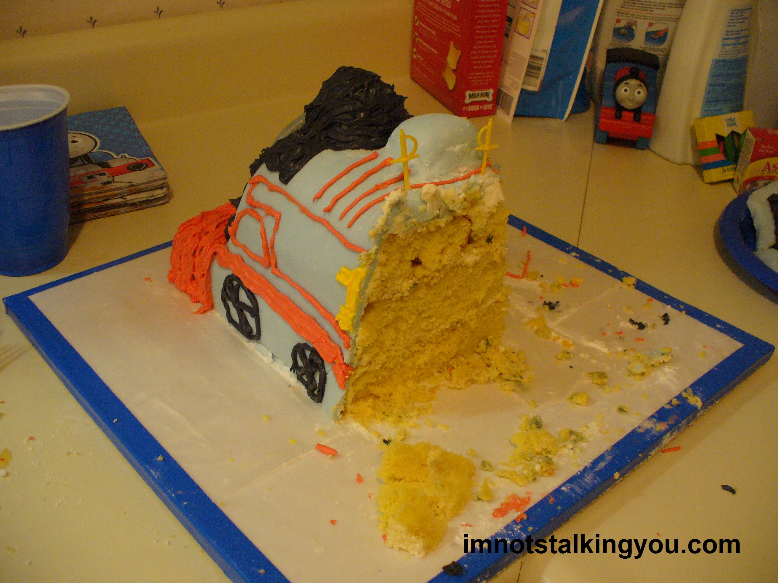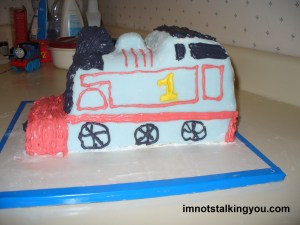 My son turned two recently. We were to have a Thomas & Friends-themed party. I was counting on this to be the case with cake-making as well. I think I assumed correctly.