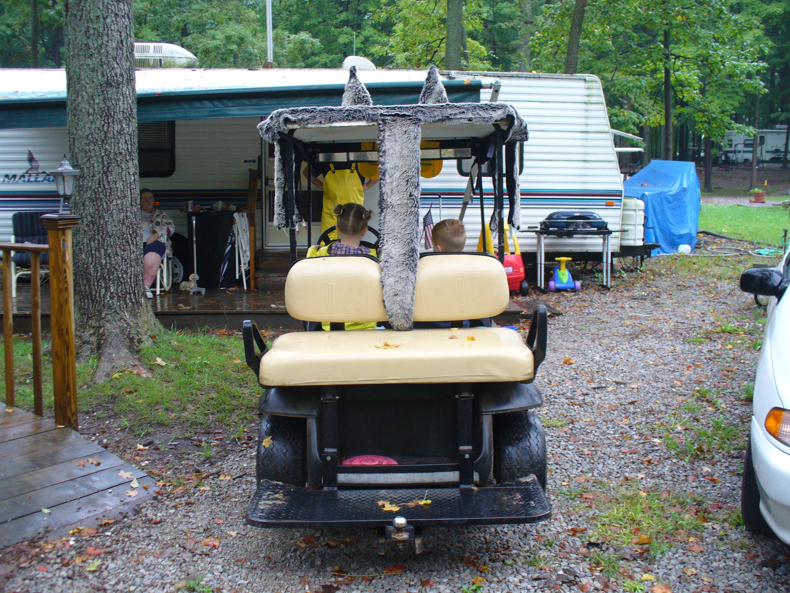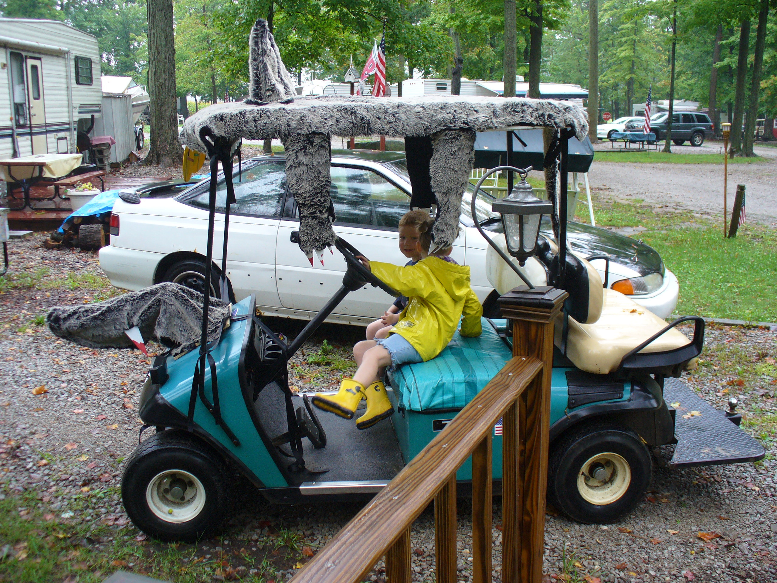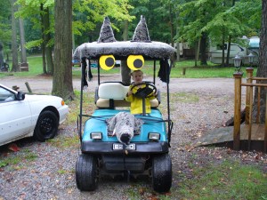 The campground closes in mid-October every year. Fear not, the children still get to celebrate Halloween. They usually hold a Halloween celebration during the summer. (Note: You can’t necessarily just use your costume from last year. A Halloween costume for October in Michigan needs to be warm. In the summer, it does not.) One year the campground announced a golf cart costume contest. It sounded completely insane. And that is how I knew I had to enter.