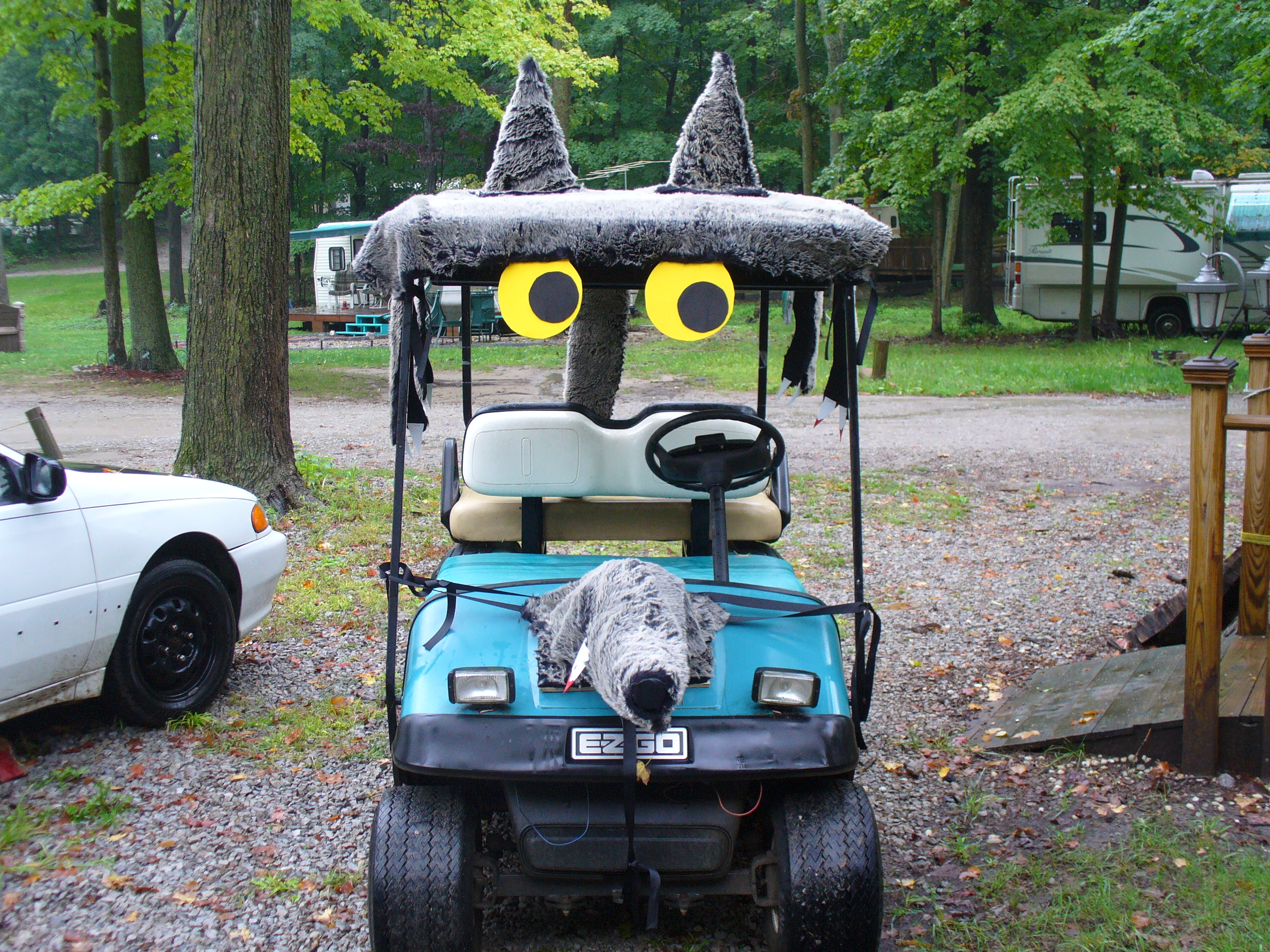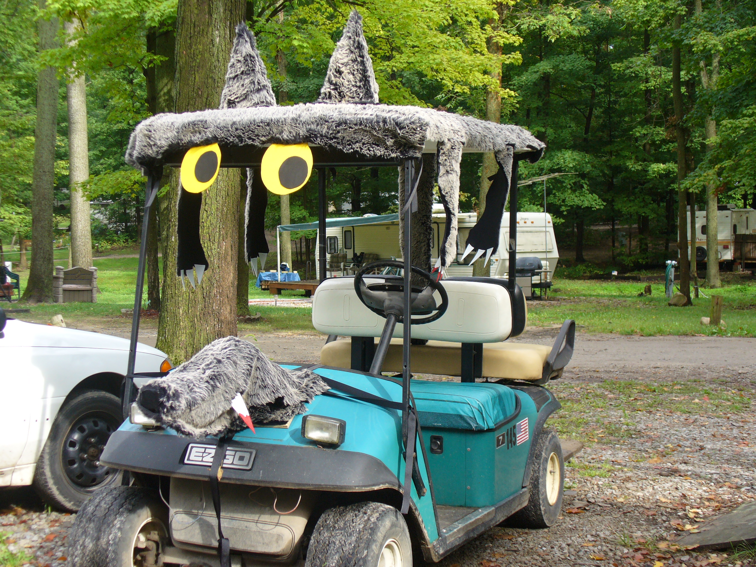 It turned out everything fit fine and it was as cute as Hell. It even proved very durable when we test drove it around the campground’s gravel road and over potholes. But due to the rain, the Halloween festivities were delayed till the following weekend. This was a potentially devastating development for us, as now our competition had seen what we were bringing to the table.