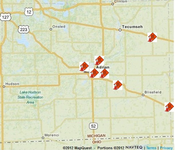 A map of Lenawee County showing all the 2012 construction projects, that I gathered myself.