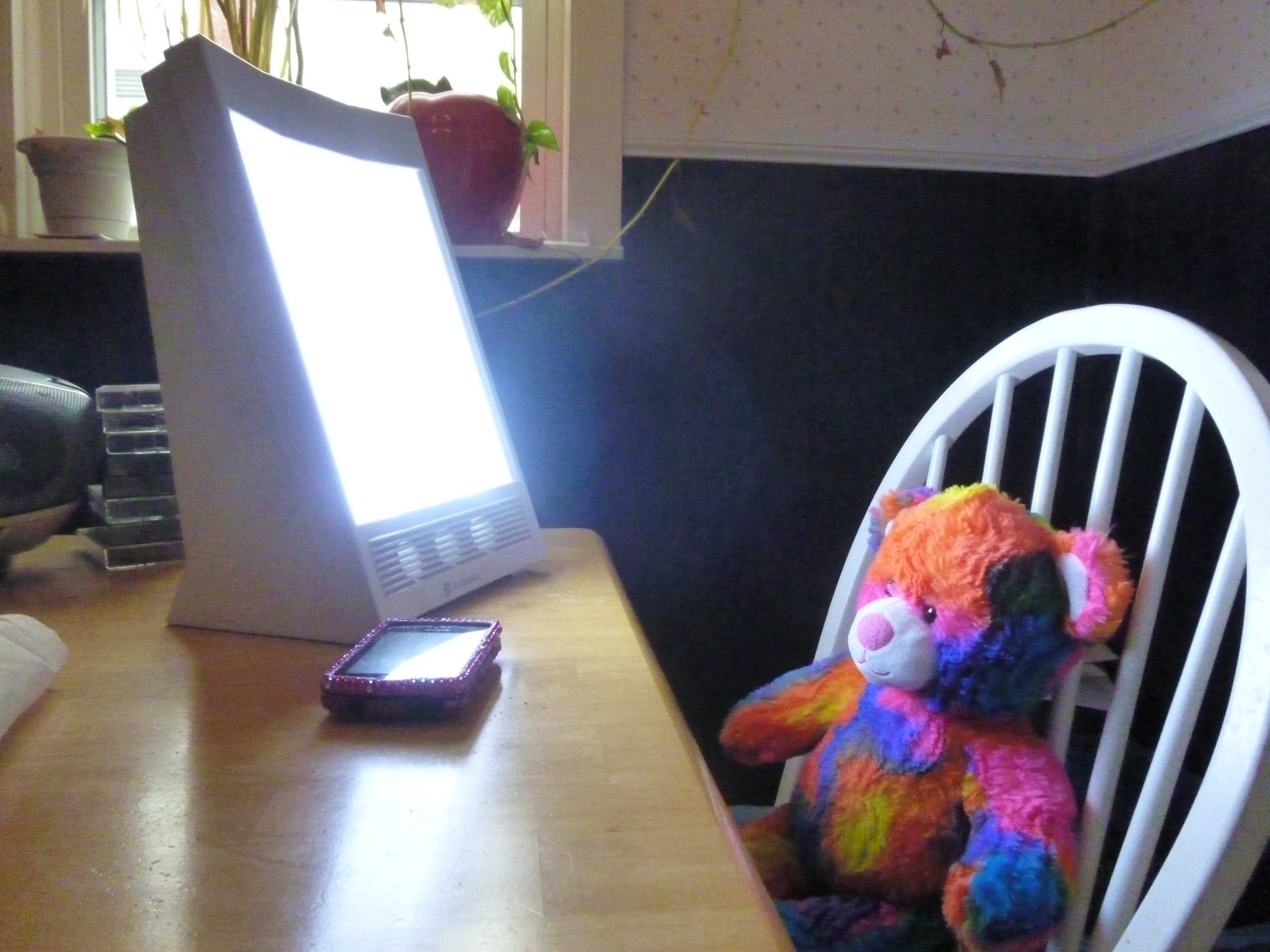 Rainbow bear demonstrating my SAD light
